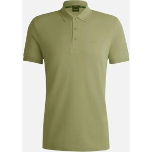 Hugo Boss Paddy polo. This beige/khaki regular fit polo has short sleeves a three button fastening, tonal trim to collar and cuffs with tonal embroidered BOSS logo to chest. Under collar Hugo Boss repeat logo. Made from 100% Cotton.