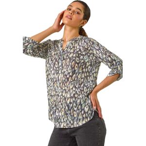 Roman Womens Animal Print Stretch Blouse - Grey - Size 12 Uk
