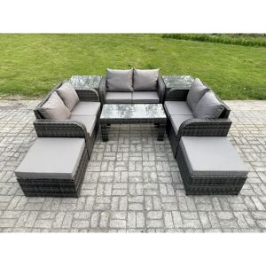 This patio rattan sofa set can be used both indoors and Outdoor, with high quality PE rattan and durable galvanized steel construction for sturdiness and long lasting. Outdoor garden furniture can also be placed on the patio or balcony, The design of this rattan furniture is a perfect blend of country chic and modern minimalism, adding an elegant touch to your house. Set dimensions: 2 x Reclining chairs Size: 74W x 69D x 79H cm; 1 x 3 seater Sofa Size: 177W x 67D x 79H cm; 1 x Dining table size: 140L x 80W x 70H cm; 2 x Small fully assembled footstools 40L x 40W x 34H cm; 2 x Big Footstool :65L x 65W x 34H cm; Dark Grey Mixed rattan with dark grey fabric .Color may vary due to light or monitor .we are unable to return the item due to this problem .Please contact us before purchase if you have requirements on color saturation . The 2 armchairs are adjustable, you can adjust the inclination of the chair back from 90-130 through the button .> Items Comes Flat Packed And Easy to Assemble, Sturdy Galvanized Steel Tube Metal Frames With Powder Coating To Prevent Rust. Ergonomic High Back And Declining Design For Extra Comfort. Flat PE Rattan Completely Made By Hand, 5mm Thick transparent Tempered Glass With Sucker On Surface To Prevent Sliding8 cm Thick Seat Cushion With Soft Back Cushion provide You with More Comfort. Fimous 8 Seat Outdoor Wicker PE Rattan Garden Furniture Set with 4 Stools in Dark Grey