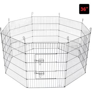 Features -Sturdy metal construction. -8 panel pet playpen, each panel can be attached to the next in a variety of different shapes. -Suitable for dogs, cats, rabbits, guinea pigs and other small pets or animals. -Creates a safe enclosure for your pets. -Easy to set up and fold away. -You can connect two or more sets together to create a larger run. -Easy access door with one or two latches. -Drop pin allows run to be secured in the ground. Specification (24'' Height) Small ?61 x 61cm (each panel) with one latch on the door (30'' Height) Medium ?76 x 61cm (each panel) with one latch on the door (36'' Height) Large ?91 x 61cm (each panel) with two latches on the door (42'' Height) X-Large ?107 x 61cm (each panel) with two latches on the door (48'' Height) XX-Large ?122 x 61cm (each panel) with two latches on the door The P&P is only for those addresses in Mainland England.A surcharge will apply to the remote areas .