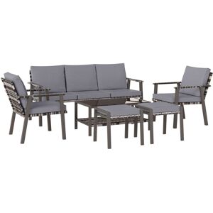 Make your garden stand out like never before with this beautiful outdoor corner sofa from Outsunny. Using aluminum for the base frame of the garden sofa to create a long-term and stable structure, each of the eight pieces included (two corner seats, four normal seats, a footstool, and table) are wrapped in mixed-grey rattan to ensure strength of the conservatory furniture, with a smooth finish that can be wiped clean easily. Padded seats and back cushions provide comfort.Features:Outdoor dining set, formed of two corner seats, four middle seats, a footstool and a coffee tableAluminium frame for a steady structure, with mixed-grey hand-woven rattan on top, allows each piece to be durable and tough against everyday wear and UV damageThick grey seat and back cushions to sink in and relaxFour cushions add extra comfortAdjustable foot pads for balance and protection to the floor beneathEasy to clean: simply wipe with a damp clothMaximum weight per seat: 160kg, no assembly required.