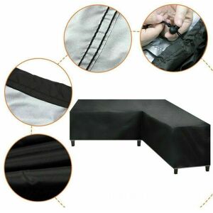 Perfect for L-shaped sofa:L-shaped outdoor sofa cover; Compared with other rectangular sofa covers, this L-shaped sofa cover is more in line with the shape of your sofa.Saves space and fabric and fits perfectly. Upgraded durable and waterproof material:Made by 210D Oxford Polyester material, moisture resistant and UV resistant. lightweight.The sofa cover can protect your furniture from wind, rain, frost, UV rays, dirt, dust or bird scatter, keeps your furniture to be safe, clean and dry.So comes with a stuff sack for easy storage. Windproof furniture cover:Designed with air vents to reduce condensation inside condensation and wind wave.6 Click on Close the straps which are declined on the legs for fastening firmly and are two long straps in the middle of the fasted bottom er on the couch. Two elastic hem drawstrings with toggles help adjust a snug, custom-like fit. Warm Tips:While the furniture is not flat, the low covering points will collect water and debris, we suggest you put some