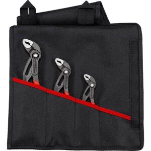 00 19 55 S5 KNIPEX Cobra® Set The KNIPEX Cobra® are the legendary high-tech water pump pliers from KNIPEX. With their extremely strong self-locking effect, they allow energy-saving work without slipping on the workpiece. High-quality tool roll made from durable polyester fabric with hook-and-loop fastener. Equipped with KNIPEX Cobra® high-tech water pump pliers in five different lengths from 125 to 300 mm. Dimensions, open (L x H): 430 x 325 mm. Content: 1 x 87 01 125 KNIPEX Cobra® High-Tech Water Pump Pliers (125 mm), 1 x 87 01 150 Knipex Cobra® High-Tech Water Pump Pliers (150 mm), 1 x 87 01 180 Knipex Cobra® High-Tech Water Pump Pliers (180 mm), 1 x 87 01 250 Knipex Cobra® High-Tech Water Pump Pliers (250 mm), 1 x 87 01 300 KNIPEX Cobra® High-Tech Water Pump Pliers (300 mm),
