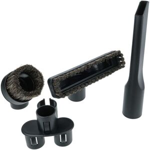 vhbw - the clever way 4-part vacuum cleaner nozzle set for vacuum cleaners with 32 mm diameter pipe THE SET CONSISTS OF: - 1x FURNITURE BRUSH (ROUND BRUSH) - Compact design for cleaning hard-to-reach surfaces, corners and edges - With soft bristles for gentle cleaning of furniture, computers, televisions etc. - 1x UPHOLSTERY BRUSH - Dried-on dirt is easy to remove thanks to the hard bristles - 1x CREVICE NOZZLE - Ideal for cleaning corners and joints - 1x 3-IN-1 CONNECTION ADAPTER - Suitable for the pipe diameter of all standard vacuum cleaner pipes - Precision-fit design - Ensures optimum, reliable hold between suction tube and nozzle COMPATIBLE WITH Kärcher T 10/1 Advanced, T 10/1 Adv, T10/1eco!efficency