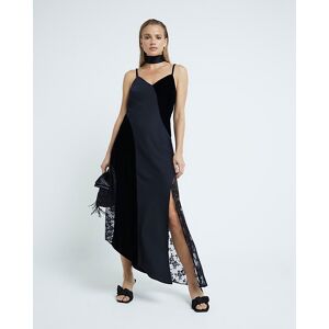 River Island Womens Midi Slip Dress Black Satin Velvet And Lace - Size 8 Uk | ✔ Check At Store | £30.00 |