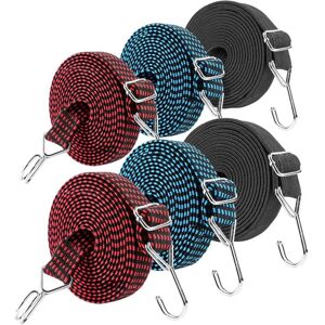 [Great Value Set] The set includes 6 elastic straps luggage rope cords with metal hooks, the dimensions are: width 3 cm * thickness 4 mm * length 1 m. Widen, thicken and lengthen the elastic band, the quantity is sufficient, and it is more durable and durable to meet your different needs. [Premium Material] The bungee cord is made of high-quality latex wrapped with high-quality nylon thread, which is stronger and more elastic than ordinary rubber bungee cords. The outer layer of nylon thread has 2.5 times the tensile force and strong resilience and can be used for a long time without deformation. The metal hook on the luggage bungee cord will not break or deform, and the bundled goods are safer. [Widely Used] It can be used as an indispensable tool for securing cargo and loads on cars, roof racks, trolleys. It can be used to fix tents, awnings, temporary clothes rails, etc. outdoors. It can also be used to fix large furniture when moving. Compared with ordinary round elastic ropes,
