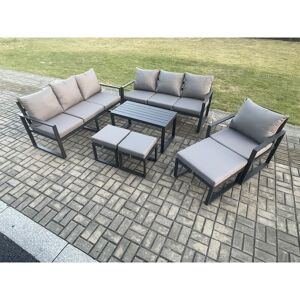 This deluxe aluminium outdoor sofa set is a great addition to your patio or garden, made of high quality Alloy aluminium and powder coating for sturdiness and structural durability. Set Dimensions: • 1 x 3 Seater Sofa: 166W x 73D x 78H cm • 1 x Chair Size: 74L x 70W x 78H CM • 1 x Side coffee table :68L x 68W x 59H cm • 1 x Big footstool :60L x 60W x 35H cm • 2 x Fully Assembled Stool Size: 40L x 40W x 36H CM • 1 x Oblong Coffee table : 97L x 52W x 51H cm Dark grey powder coated with dark grey fabric .Color may vary little due to light or monitor .we are unable to return the item due to color problem .please contact us before purchase if you have requirement on color saturation. Items Comes Flat Pack And Easy Assemble, Alloy Aluminium Frame With Powder Coating To Prevent The Rust This Set Was Completely Made By Handmade, Aluminum table top Without glass, 9 CM Thick Seat Cushion With Soft Pillow Back Cushion Gives You More Comfort Low Maintence ,Removable Cushion Cover And Easy Move To