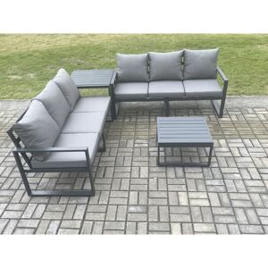 This deluxe aluminium outdoor sofa set is a great addition to your patio or garden, made of high quality Alloy aluminium and powder coating for sturdiness and structural durability. Set Dimensions: 2 x 3 Seater Sofa: 166W x 73D x 78H cm; 1 x Side coffee table 68L x 68W x 59H cm; 1 x Square Coffee table : 60L x 60W x 35H cm; Items Comes Flat Pack And Easy Assemble, Alloy Aluminium Frame With Powder Coating To Prevent The Rust, Move To Different Place. Pls Keep the Cushion Indoor Or With Rain Cover When Not In Use . Keep The Furniture With Rain Cover If Not Use For Long Time .the product is delivered on pallet, to kerbside only. Fimous Aluminium 4 Pieces Garden Furniture Sofa Set with Cushions 6 Seater Outdoor Patio Set with Square Coffee Table Side Table Dark Grey