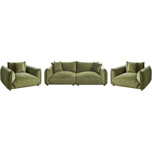 Double Deep Seat Settee. Elevate your living room with a fusion of contemporary style and comfort. Upholstered in durable velvet fabric, in an elegant golden shade of brown, this sofa exudes sophistication while offering a cosy retreat. Its short, stable rubber wood legs provide a sturdy base, accentuating the deep, wide seat that beckons you to unwind. The included scatter cushions, in matching fabric, enhance both the aesthetic and comfort, inviting you to a luxurious lounging experience. Let yourself sink into the plush cushions and feel the stress of the day melt away. Details: Product Type: 3 Seater Sofa Style: Glam General Color: Brown Shade: Golden Brown Material Type: Fabric Main Material: Velvet Additional Material: Plywood Filling Material: Foam Material Composition: 100% Polyester Arm Style: Track Pattern: Solid Seat Construction: Elastic Belt Seat Foam Density: 22 kg/m3 Seats Up To: 3 People Dimensions: Armrests Height: 58 cm Depth: 104 cm Seat Thickness: 16 cm Seat