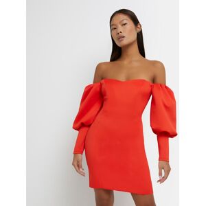 River Island Womens Mini Dress Petite Red Bardot - Size 6 Uk | ✔ Check At Store | £10.00 |