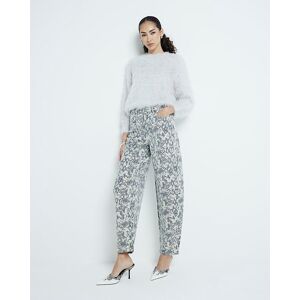 River Island Womens Barrel Jeans Beige Denim Seamed Snake Print - Ecru Cotton - Size 10 Long | ✔ Check At Store | £10.00 |