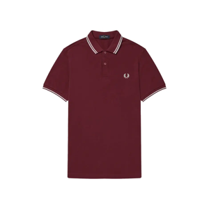 Men's Fred Perry White Twin Tipped Collar Port Red Polo Shirt - Size: 34