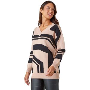 Roman Womens Abstract Print Button Detail Longline Jumper - Camel - Size 12 Uk | ✔ Check At Store | £30.00 |