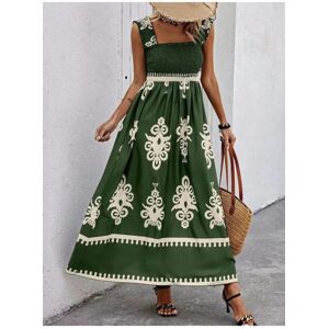 Everyday The Label Womens Smocked Printed Wide Strap Maxi Dress - Dark Green - Size X-Large