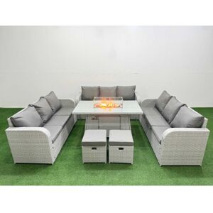 This deluxe rattan rising sofa dining set is a great addition to patio or garden, made of high quality PE rattan and durable galvanized steel construction for sturdiness and long lasting.Durability ,and can be put outdoor all year round. Set Dimensions: • 3 x Three Seater Sofa : 177W x 65D x 66H cm • 2 x Side coffee table :65L x 65W x 66H cm • 1 x PC Rising dining table: 140L x 80W x 68/48H cm (height up 68, down 48) • 2 x Big Foot Stool: 65L x 65w x 34H cm Light grey mixed rattan with dark grey fabric .Color may some difference due to light or monitor .we are unable to return the item due to color problem. Table Can Be Used Both For Coffee Or Dining Table,Cheap Price Compared With Other On Or Offline Store For Rising Table Set Items Comes Flat Packed And Easy Assemble,Sturdy Galvanized Steel Tube Metal Frames With Powder Coating To Prevent The Rust Flat PE Rattan Completely Made By Handmade, 5mm Thickness Clear Tempered Glass With Sucker On Surface To Prevent Slide,8 CM Thick Seat