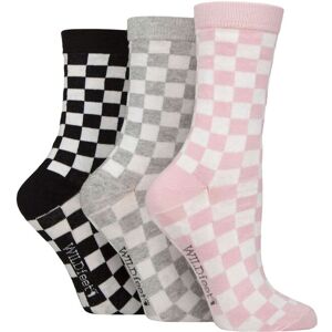 Women's 3 Pair SOCKSHOP Wildfeet Cotton Novelty Patterned Socks Checker Print 4-8 - Multi Coloured - Size: Small