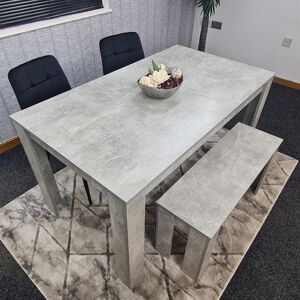 A Stunning wooden brown rustic effect Dining Table set included set of 4 leather padded metal chairs with slightly curved back design, and 1 bench The dining table colour is brown with rustic effect. The dining chairs are with slightly curved back design for fitting with body shape. Available in Black or Grey colour. The dinner table is crafted with high-quality MDF, and a melamine laminated finish to ensure a durable, long-lasting tabletop. The dining chairs are made of premium faux leather with metal chair legs Dimensions: The dining room chairs sizes are H96 x L41 x W52 cm. Dining table size is H75 x L117 x W77 cm. The seat height of the chair is 44 cm Bench made of high quality MDF and matching rustic effect with a size of L90 x W30 x H45 cm. Straightforward assembly is supported by clear instructions for our dining table set. FEATURES: The Dining set includes a table, 4 high-quality chairs, and 1 bench. Dining table made of high-quality MDF and a melamine laminated finish. Chairs material is premium faux leather with metal chair legs. Bench is made of MDF with matching rustic effect. Legs prevent damage with the adjustable foot protection provided. Chair Size: H96 x L41 x W52 cm. Table Size: H75 x L117 x W77 cm. Bench Size: L90 x W30 x H45 cm. The seat height of these chairs is 44 cm. Convenient format with instructions for easy assembly. 17 Stories Chair Colour: Grey
